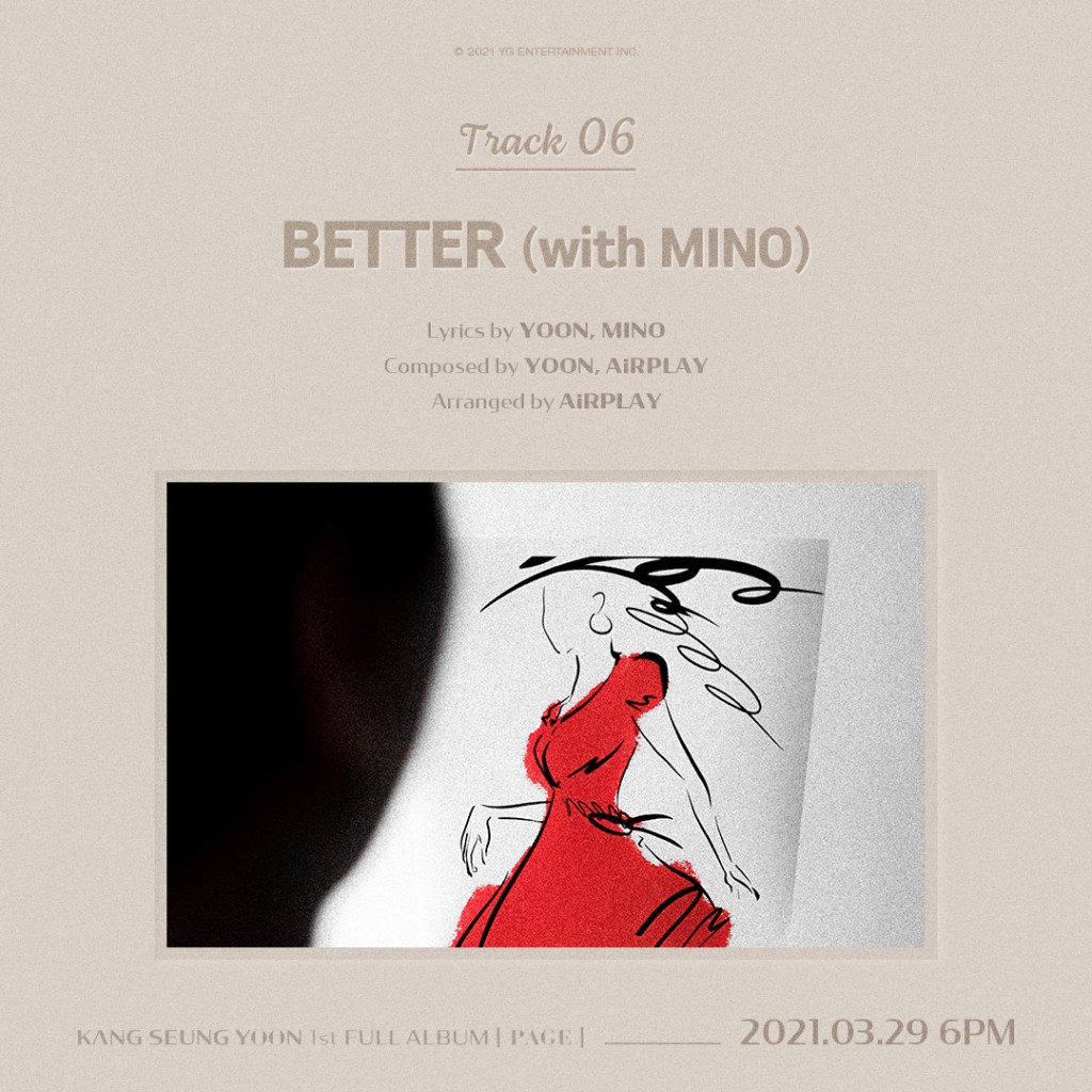 “Better” featuring Mino, switches up the relationship storyline. In this song Yoon expresses that he was the problem in the relationship. Now that the relationship is over the girl looks better – in other words she’s more herself than when she was in the relationship.